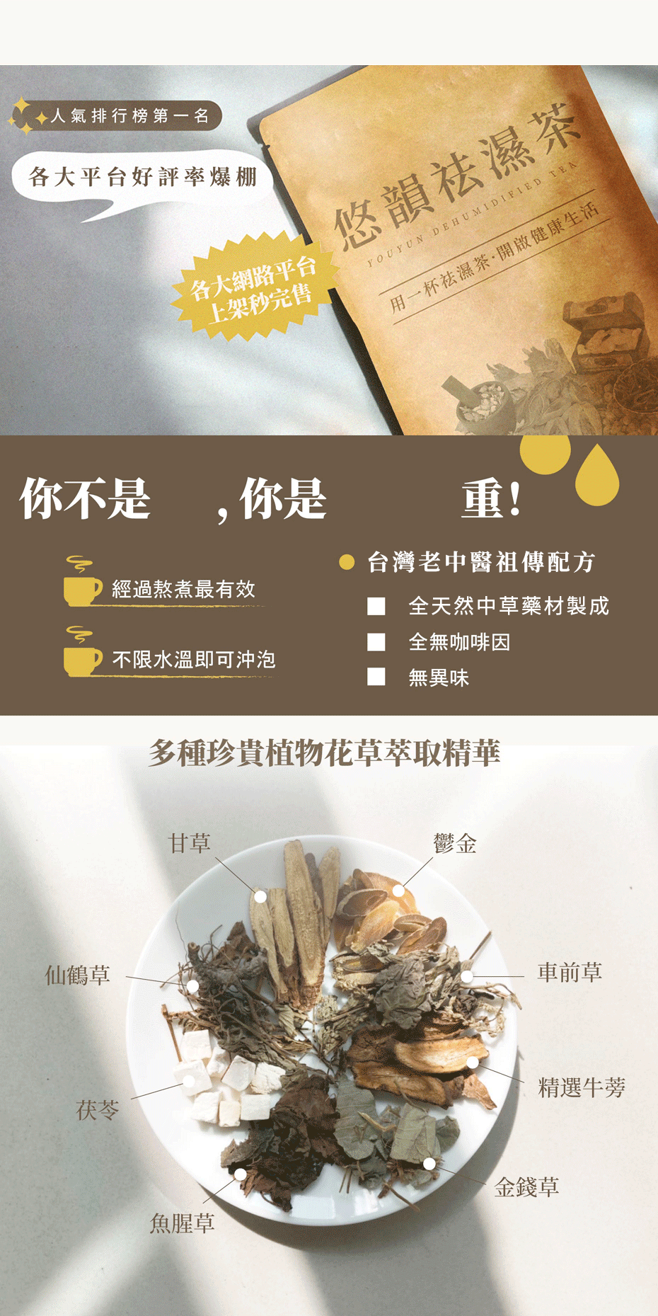 天然古方熬煮濃縮悠韻祛濕茶×10大包